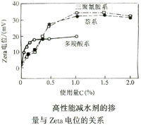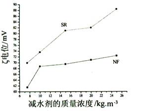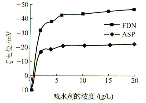 水泥颗粒表面 ζ 电位与减水剂浓度的关系 |
