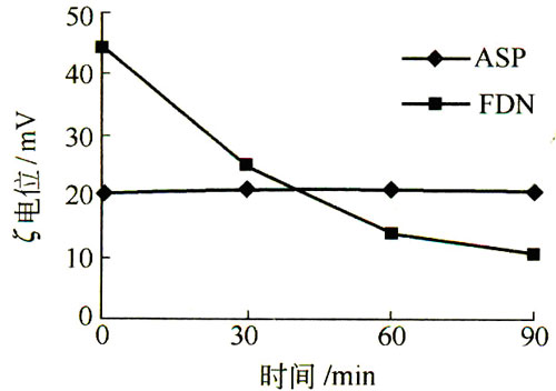 掺不同减水剂的水泥颗粒表面 ζ电位与时间的关系