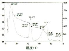 4 . 2 SR 改性混凝土试样早期热形成机理分析 SDT2960 型 DSC-TGA 热分析仪,温度参数为:室温~ 1000 ℃ ,升温速率: 10 ℃ /min ,空气为载气,实验结果见图 6 。