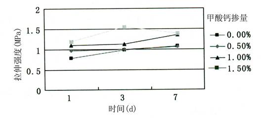 图 4 甲酸钙的掺量对砂浆拉伸强度的影响