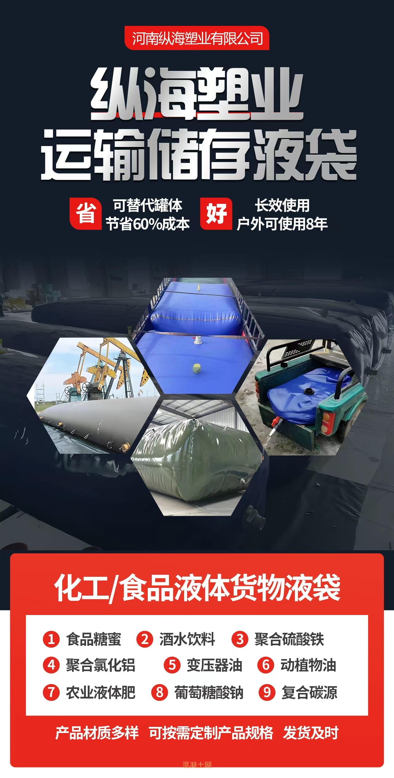 化工级车载液袋适用于各类化工液体,如:减水剂,速凝剂,水玻璃,聚合硫酸铁、复合碳源,聚合硫酸铝,三氯化铁