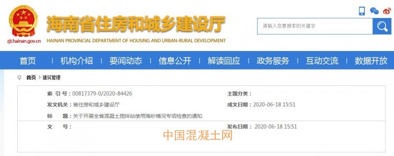 为加强全省混凝土搅拌站管理,有效规范市场行为,有效配合我省打击非法采砂整治和扫黑除恶专项斗争,根据省公安厅提供的线索,部分混凝土搅拌站涉嫌违规使用非法海砂的问题,我厅拟对全省混凝土搅拌站使用海砂情况进行专项检查,现通知如下: