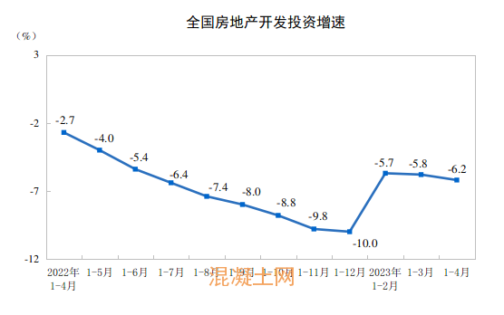 1—4月份,全国房地产开发投资35514亿元,同比下降6.2%(按可比口径计算,详见附注6);其中,住宅投资27072亿元,下降4.9%。