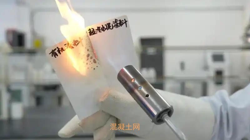 “超冷水泥”材料不仅有降温功能,还有A级防火功能。记者把喷枪对准两种涂料,左边是普通涂料,已经开始着火了;右边是“超冷水泥”涂料,没有什么燃烧的痕迹。烧完之后,可以看到左边还在燃烧,而右边并没有什么痕迹。