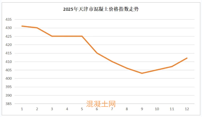百年建筑网相关数据显示,2025年预估全国混凝土产量为22.5亿方,同比下降10%。截至2025年11月底,C30混凝土非泵均价同比下跌7.7%;国内在备案混凝土企业数量为21049家,同比减少6.8%,2025年国内混凝土企业迎来企业减少元年;混凝土企业应收账款回款率为42.6%,混凝土行业回款情况呈现 “波动中持续承压” 的特征。通过上表分析,天津市混凝土市场价格2025年走势能看出全年整体呈波动下行后小幅回升的趋势,1 月指数是全年高点;1-8 月持续下滑,8 月跌至全年低位;9-12 月逐步小幅回升,但年末指数仍低于年初水平。这反映 2025 年天津混凝土价格全年重心下移,仅在年末略有回暖,整体价格压力较明显。