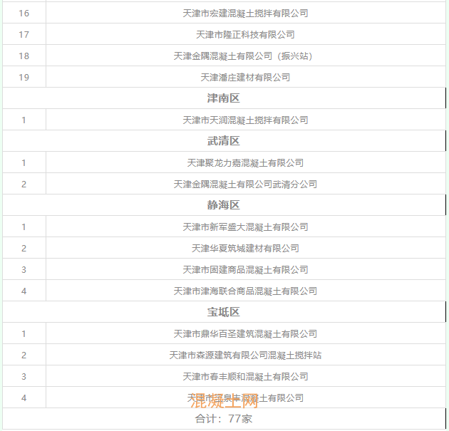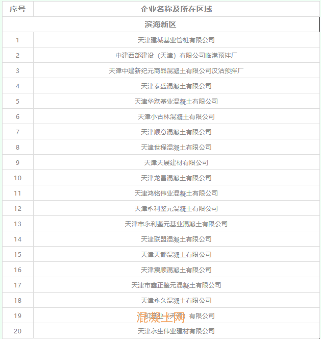天津市混凝土行业取得绩效引领性企业名单(截止2025年12月31日)