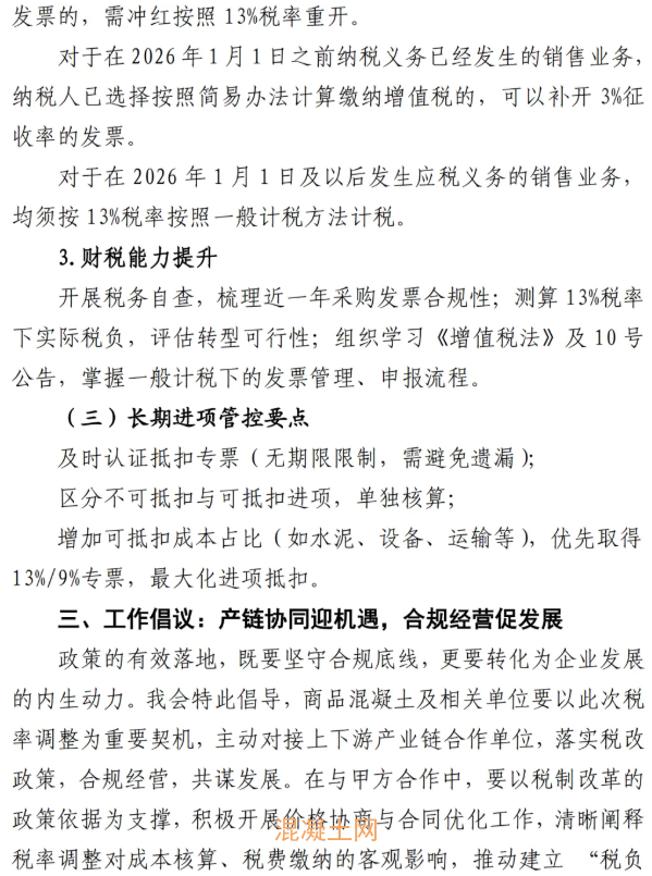 关于混凝土行业增值税税率调整与企业合规高质量发展的指引与倡议