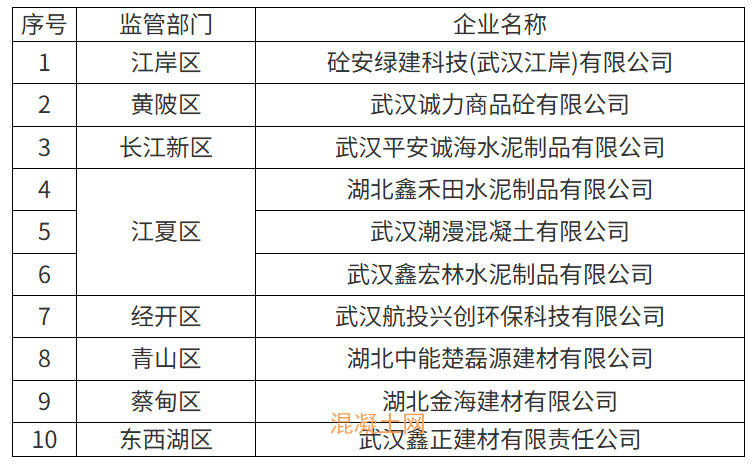 近日,武汉市自然资源和城乡建设局发布公告称,经核查,部分预拌混凝土生产企业专业承包资质存在异常情况,不符合《预拌混凝土专业承包资质标准》、《武汉市预拌混凝土和预拌砂浆管理办法》及《湖北省预拌混凝土管理暂行办法》(鄂建设规〔2018〕1号)的相关规定,具体企业清单如下: