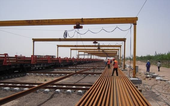 新运公司承建的新建太中银铁路铺架施工,其中正线铺轨568.548公里,架桥1662孔,并一次性铺设60KM/M无缝线路,按照施工组织设计,在平吉堡和中宁东两个铺架基地建立了500米长轨存放区。为了加快工期,满足无缝线路换铺施工进度要求,新运公司精心组织、合理安排,克服人员少、机械设备故障多、倒运频繁等困难,仅用15天时间,把中宁东铺架基地群吊设备安全移往红寺堡长轨存放区,并于5月28日开始投产使用。