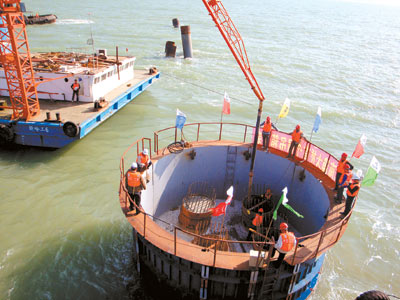 从南澳大桥建设管理部门获悉,南澳大桥海上首个承台的桩芯混凝土近日一次性浇筑成功。