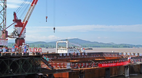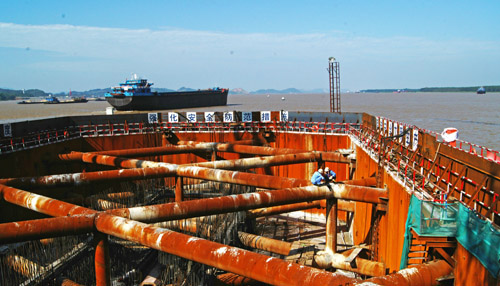 据悉,望东长江公路大桥北主墩承台,是大桥主体工程中最为重要的部分之一。北主墩承台采用大体积混凝土施工,分三层施工,共有8米厚, 8千多方混凝土。截至2013年7月上旬,望东长江公路大桥项目累计完成投资8.2亿元,占工程总投资的16.28%。